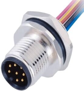 Conectores industriais M12 instalados em painel de automação