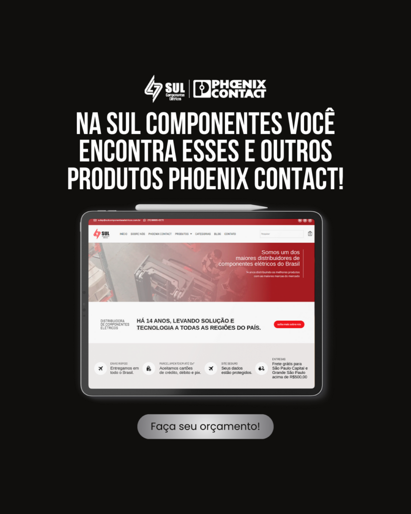 A Sul Componentes Elétricos trabalha com grandes marcas nacionais e internacionais, incluindo Phoenix Contact, Ace Schmersal, Hummel, Metaltex, Kraus Naimer, Altronic, Famatel e ABB referências em automação, proteção, conversão de sinal e infraestrutura elétrica.